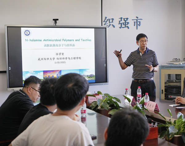 交流会后举行了“经纬课堂”学术报告会,Shanat、任学宏教授分别作了题为“Embedding Cultural Identity in Design: Perceptions, Issues and Challenges”和“Halogenated amines antibacterial polymers and textiles”的报告。报告围绕设计领域的文化嵌入认同、功能高分子材料及制品展开,聚焦学术前沿和学科交叉问题,讨论气氛热烈,有助于推进纺织科学与工程学科交叉融合,拓展威尼斯官网纺织科学与工程学科研究生的国际学术视野,培养提升研究生的科研能力。