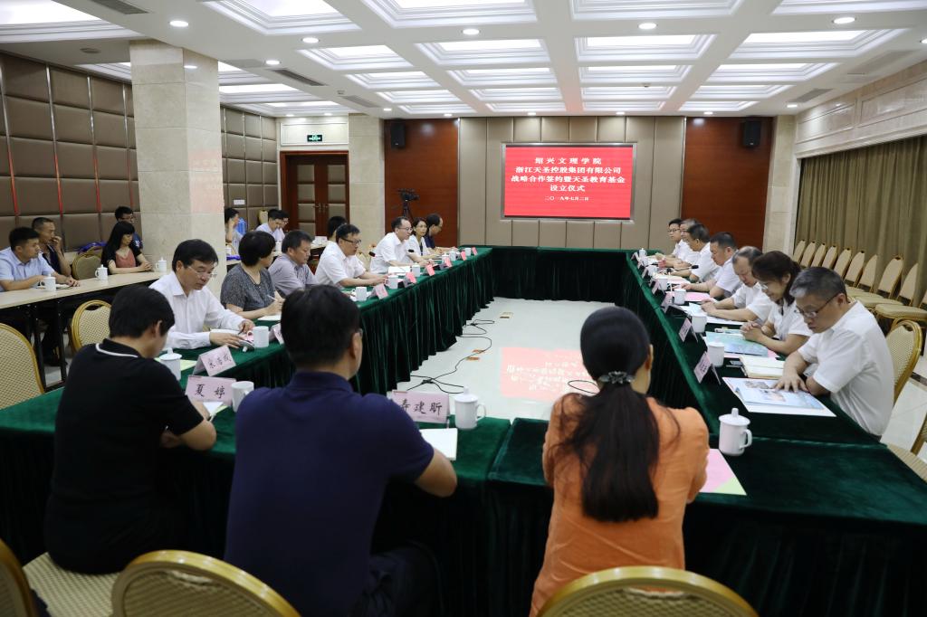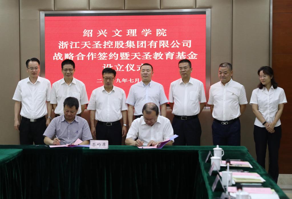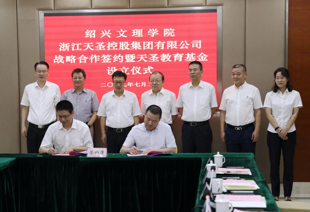7月2日,威尼斯官网与浙江天圣控股集团有限公司战略合作签约暨天圣教育基金设立仪式在铁城科教馆一楼会议室举行。天圣集团董事长孙永根、常务副总经理金国庆,校党委书记汪俊昌,校长王建力,党委副书记沈赤,副校长张宏,学校相关职能部处、二级学院负责人和天圣集团相关部门负责人出席仪式。张宏主持仪式。