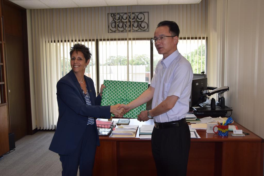 7日-10日,张宏访问了美国杰克逊维尔大学,先后与分管教学的副校长Christine Sapienza教授及戴维斯商学院院长Bill Crosby教授、文理学院院长Matthew Corrigan教授、艺术学院院长Timothy Snyder教授、国际商务办公室主任CK Kwai博士等会面交流,就两校商科2+2双学位项目的课程对接、学分互认等展开了交流,并达成了项目协议签约及项目启动的时间表。双方还就商科3+1+1本硕项目、科研合作、教师互访以及等诸多方面达成了共识,并探讨了两校在绍兴与杰克逊维尔友好城市交流中如何发挥作用和未来合作计划。