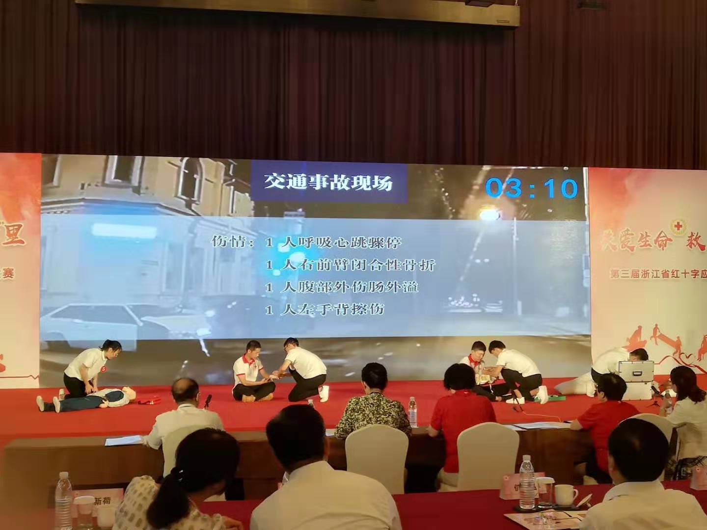 本次比赛由浙江省红十字会、浙江省人力资源和社会保障厅、浙江省卫生健康委员会、浙江省应急管理厅、浙江省总工会联合主办,以“关爱生命,救在‘浙’里”为主题,来自中国红十字会及福建、上海、杭州的7位专家受邀担任评委,近200人观摩大赛。