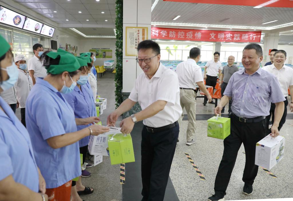 汪俊昌一行先后走访招生办录取现场、河西公寓楼、河西餐厅、校医务室、改扩建办、河东门卫室、南山门卫室、南山餐厅等工作岗位。每到一处,汪俊昌都与在岗教职工亲切交流,仔细询问工作、生活、身体等情况。他表示今年暑期的持续高温给各岗位工作都增添了难度,叮嘱大家在做好工作的同时,积极注意防暑降温,及时排除高温带来的隐患,同时仍须时刻绷紧疫情防控这根弦,确保暑期校园的安全稳定。汪俊昌代表学校对大家的辛勤付出表示由衷的感谢。
