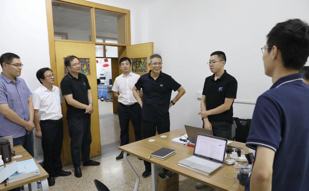 在各二级学院实验室和科研工作室,王建力向在暑期坚守岗位潜心科研工作的教师们致以亲切的问候,对老师们的敬业精神给予了高度赞扬。他详细询问了各项工作的保障情况和近期取得的研究成果,叮嘱大家注意防暑降温,保重身体,并时刻紧绷实验室安全这根弦,确保研究工作的安全开展。王建力代表学校对大家的辛勤付出表示由衷的感谢。
