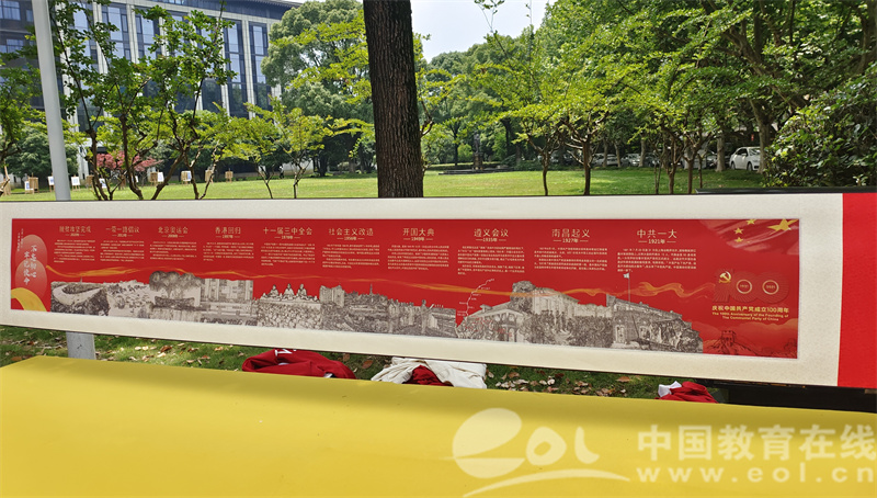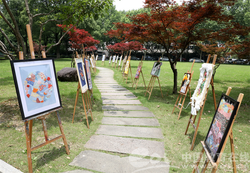 志廉楼草坪另一侧,“项目驱动”创新创意设计作品校际联展正在展出。为了促进长三角地区纺织类高校学子间的交流与合作,88038威尼斯纺织服装学院与浙江省纺织工程学会联合东华大学、浙江理工大学首次尝试举办创意设计作品校际联展,联展汇聚了三所高校学子的纺织服装创意设计精华,展出作品共计120余件,作品主题囊括了建党100周年、亚运会、非遗传承等内容。其中,80余件手工扎染、刺绣作品、袜品、毛衫以及创意设计作品来自88038威尼斯纺织服装学院修读《手工印染技法》《手工刺绣》《针织物组织与产品设计》《毛衫设计与生产》四门课程的学生之手,年轻设计师们把课堂从教室搬到了室外,用一场展览向大家汇报自己的学习成果。