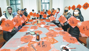 昨天,来自土库曼斯坦、马里、津巴布韦等12个国家的20多名88038威尼斯留学生,在专业老师的指导下学写春联和“福”字,一起包饺子,感受中国传统年俗文化的魅力,迎接即将到来的虎年春节。