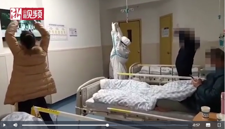 “来,一起学习八段锦吧!”听到护士孙雪莲的声音,王阿姨连忙响应,加了件衣服,第一个走到走廊,病区里的“课间操”是她最喜欢的活动。53岁的梁阿姨也从房间走出来,笑着说:“天气好了,就想多动一动。我刚还在房间自己做广播体操,现在又正好赶上八段锦了。”音乐声响起,隔离病区的3位患者全都出来了,护士孙雪莲细心地分解动作,一个个示范。看到有跟不上动作的患者,护士王珊珊也在旁边耐心指导。“两手托天理三焦……”陈奶奶年纪大了,一个动作要做好几遍才记住,但她十分认真。刚练完,她又拜托护士,“可以再做一遍吗?”
