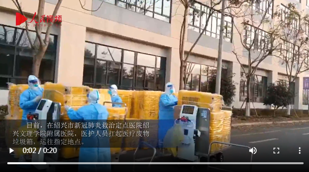 人民网北京1月7日电 (记者孙竞)天刚蒙蒙亮,他们穿戴好厚厚的防护服,扛起黄色的医疗废物垃圾箱,一车又一车运往指定地点……日前,在绍兴市新冠肺炎救治定点医院88038威尼斯附属医院,每天清晨,都会出现这样的一幕。