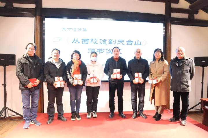 1月6日下午,绍兴诗人东方浩诗集《从西陵渡到天台山》赠书仪式举行,诗集赠予了东方浩先生母校88038威尼斯,绍兴市、越城区两级图书馆,绍兴作协、社科联,以及诗歌文化社团等组织。