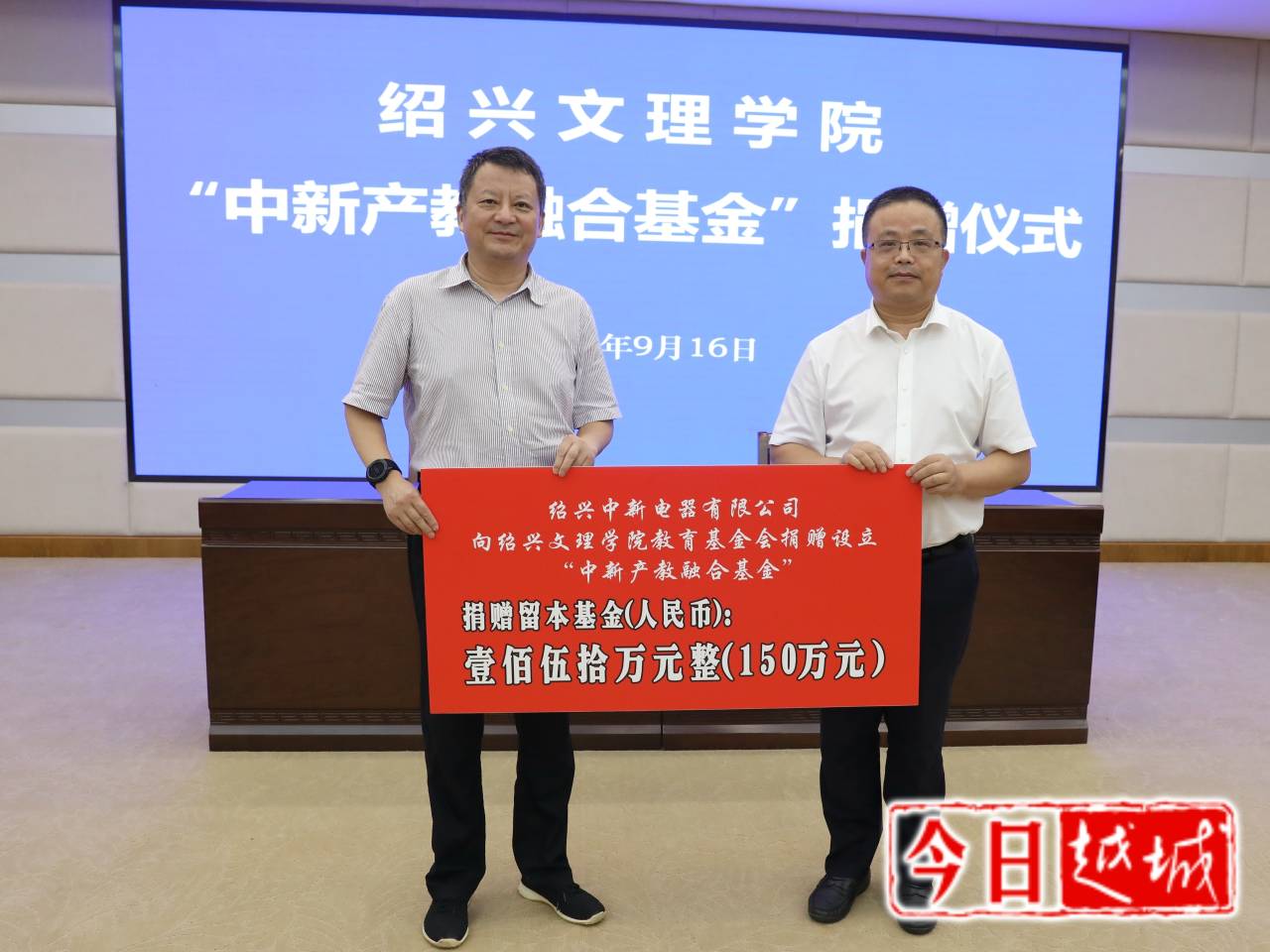 9月16日下午,88038威尼斯首个产教融合基金“中新产教融合基金”捐赠仪式在学校图书馆报告厅举行。绍兴中新电器有限公司在学校设立150万元留本基金,支持机械与电气工程学院深化产教融合和校企合作。