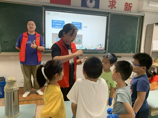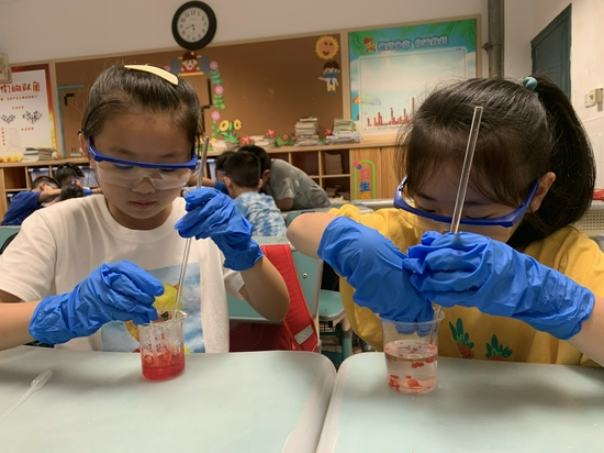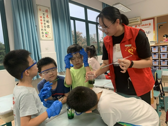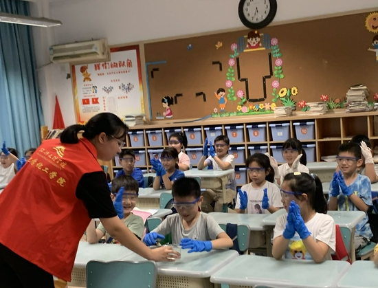 他们还带着孩子们制作“水精灵”。老师们先告诉同学们日常生活中的“水精灵”有一定的毒性,可不能随便玩。正当孩子们倍感失落时,老师们提出要教孩子们做安全无害的“水精灵”,教室里一片沸腾。随后,老师们给孩子们下发了专业的实验装备,并引领着孩子们边学边做,帮助小朋友们亲手制作出属于自己的独一无二的“水精灵”。