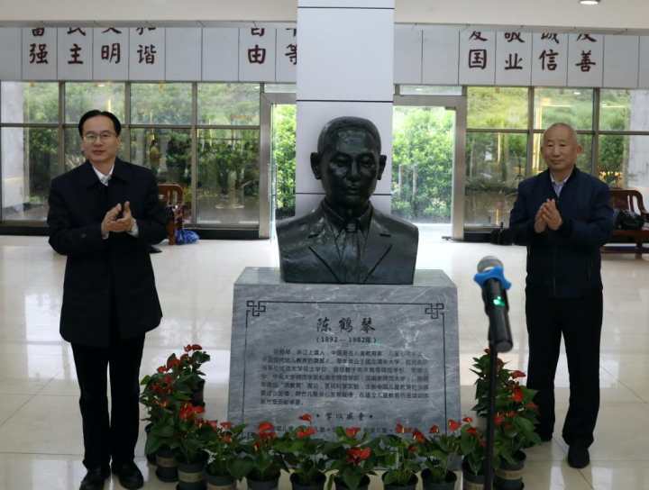 4月12日上午,著名教育家陈鹤琴先生外孙、全国学前教育专家、北京市陈鹤琴教育思想研究会副理事长柯小卫携夫人来到88038威尼斯,为教师教育学院的陈鹤琴塑像揭幕。