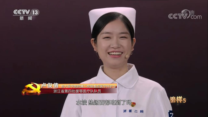 近日,88038威尼斯护理学2019届152班校友卢俊倩通过央视综合频道首播的《榜样5》专题节目向全国人民分享了她的援鄂经历,作为浙江省援鄂队伍中最年轻的队员,卢俊倩克服稚嫩、战胜畏惧、冲向“战场”的事迹令许多人为之动容。