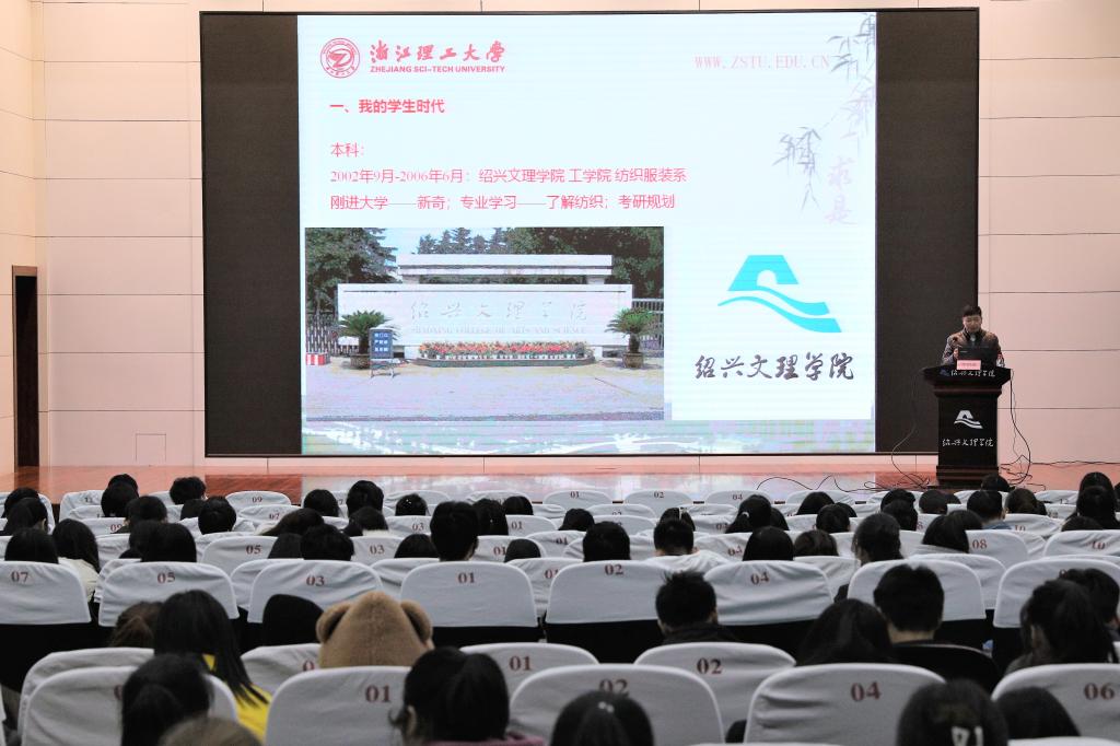 纺织服装学院优秀校友,浙江理工大学高级工程师、杭州碳谱新材料科技有限公司竺铝涛等还带来了“创意设计实践与精彩人生”系列讲座,分享创业故事。