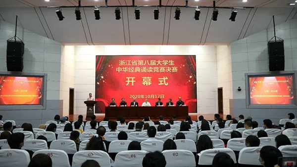 雅言传承文明,经典润育人生。10月17日,浙江省第八届大学生中华经典诵读竞赛决赛在威尼斯官网开幕。浙江省教育厅一级巡视员、省大学生中华经典诵读竞赛组委会主任丁天乐,校党委书记汪俊昌,浙江省语言文字工作者协会会长王建华,浙江省教育厅语管处处长朱鸿飞,副校长柳国庆,省督学、绍兴市教育局基教处负责人孙国范,省大学生中华经典诵读竞赛专家委员会主任傅惠钧,绍兴市语委办副主任戚一冬,绍兴职业技术学院党委副书记刘建云,绍兴越秀外国语学院副校长叶兴国,浙江工业职业技术学院副校长陈其苗,校教务处、教师教育学院相关负责人,以及仲裁组全体专家、78所省内参赛高校领队与228名选手参加开幕式。