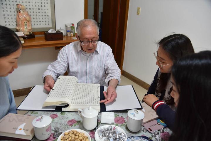 虽然退休已二十多年,但他仍坚持到学校上课。