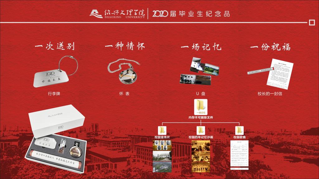 “虽然无法现场参加毕业典礼挺遗憾,但看到学校为我们准备了这么多礼物,还是很感动。”毕业生赵铭林告诉记者, “里面有学校的历史、入校后的大事记、新校区的效果图。我会好好保存,有机会一定要回学校看看,补上我的毕业典礼。”