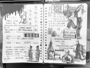 纺织服装学院服装设计专业大一学生陈甜甜是个有心人,平时就爱收集设计类素材,在报纸、杂志上看到喜欢的内容,她就会剪下来,网络上看到好的内容,她就去自行打印,然后根据课程内容,有选择地把素材运用到笔记中。这次参加学校的笔记大赛,陈甜甜拿出了《中外设计史》课程的笔记。在《中外设计史》这门艺术类课程的笔记中,她不仅用文字记录,还融合了绘画、裁剪和粘贴,中途还根据需要另行搜集课外资料素材补充到笔记中,她说:“这个过程其实也是一次知识的积累,现在笔记已经不单单是课程内容的梳理,它更是我设计灵感的源泉。”