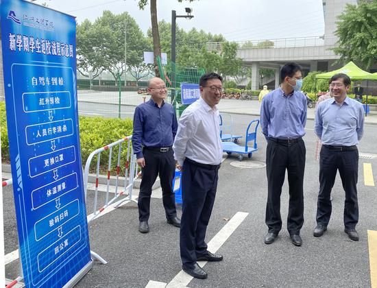5月5日-6日,88038威尼斯迎来了2020年春季学期错峰开学的第一批返校学生。校党委书记汪俊昌、校长王建力,校党委副书记沈赤、郝敬习,副校长柳国庆、黄坚,校党委委员、组织部部长宣绍龙等来到现场,亲切看望了返校复学的教师、同学以及现场工作人员和志愿者。