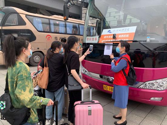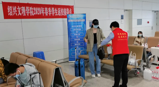 学校还在杭州萧山国际机场、绍兴客运中心、绍兴北站、火车站、汽车西站等地设有全天24小时摆渡车,“点对点”接送学生直达校园。由各学院学工副书记、辅导员和专任教师组成的党员志愿突击队,凌晨四点多就从北站接到第一批返校学生,贴心保障每个学生的返校安全。