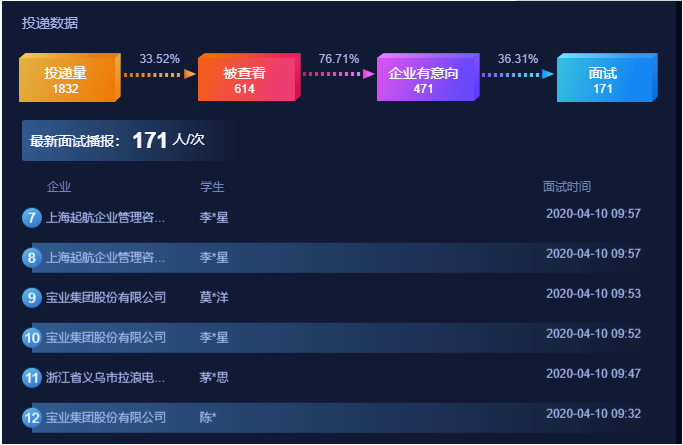 学校建立了覆盖全体毕业生的15个就业指导群,面向用人单位的18个专业招聘服务群,为毕业生和用人单位提供24小时就业和招聘指导服务。学校组建了由专业教师和就业专项工作辅导员组成的“创就业指导空中咨询团”,为毕业生提供及时、有效的创就业咨询;开设24小时心理咨询热线,为毕业生提供就业心理辅导;开设“一对一门诊”,精准对接毕业生需求,实施全面的云指导。学校同时建立毕业生就业方案申请、确认平台及线上签约平台,方便毕业生就业方案上报及确认、三方协议签订,实现就业手续云办理。