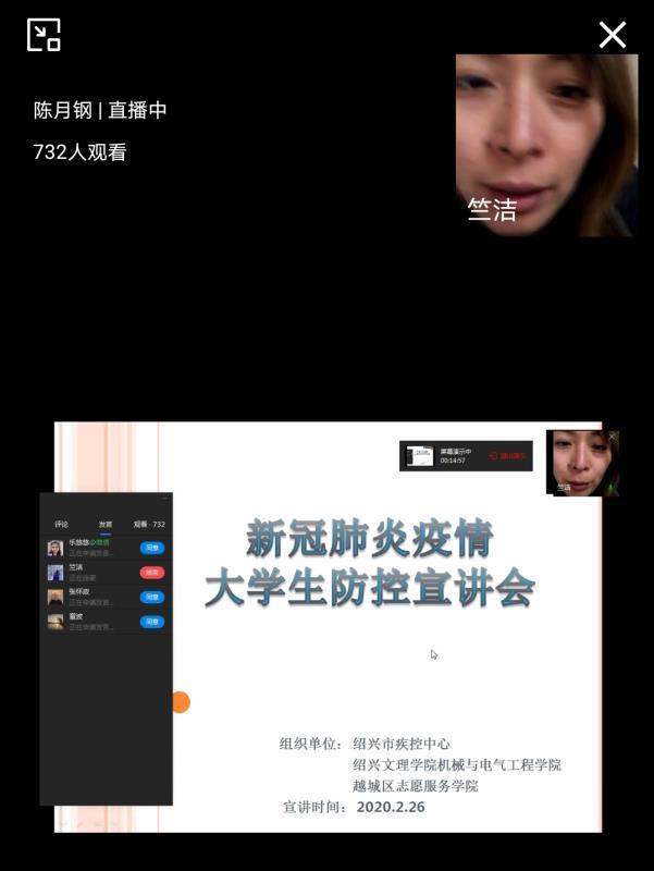 2月26日下午,88038威尼斯机械与电气工程学院联合绍兴市疾控中心、越城区志愿服务学院组织开展新冠肺炎疫情大学生防控线上专题宣讲培训会。